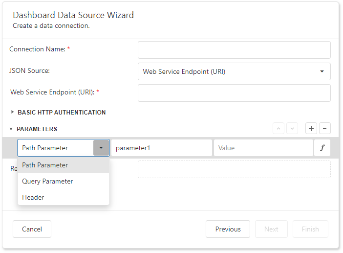 - A path parameter appends a path element to a JSON endpoint's Uri.